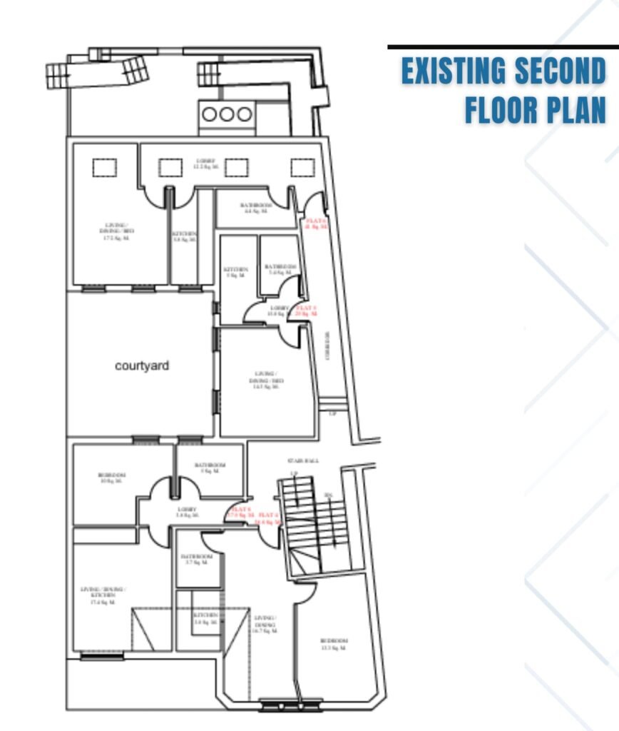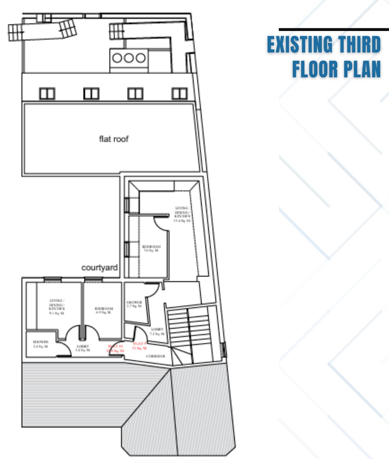 The survey included detailed measurements of internal spaces, circulation areas, courtyards, and roof levels, resulting in a full set of accurate existing-condition drawings.